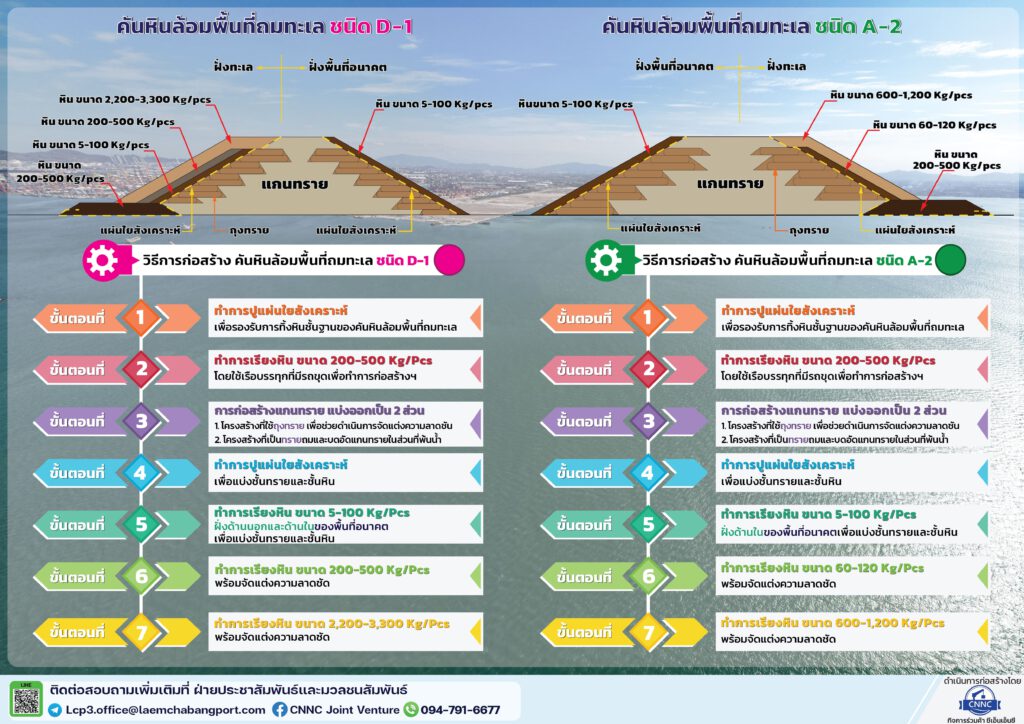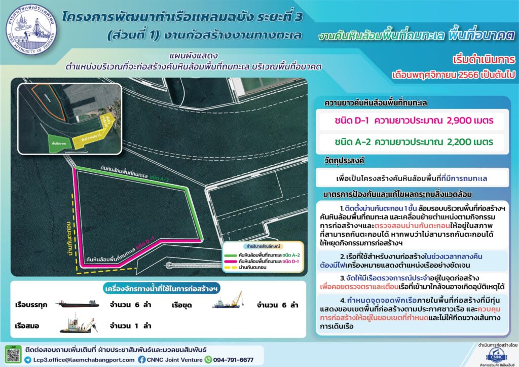 งานก่อสร้างคันหินล้อมพื้นที่ถมทะเล พื้นที่อนาคต ดำเนินการก่อสร้างโดยผู้รับจ้างก่อสร้าง (ส่วนที่ 1) งานก่อสร้างงานทางทะเล จะเริ่มก่อสร้างในเดือนพฤศจิกายน 2566 เป็นต้นไป