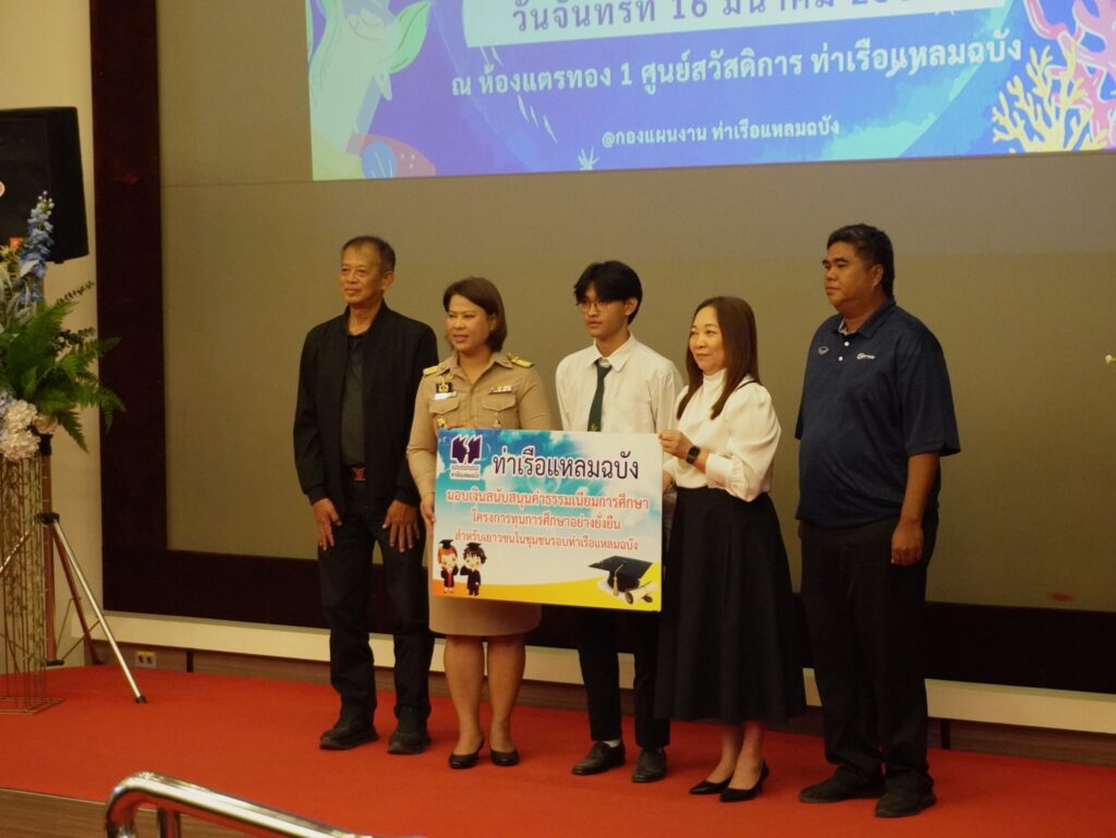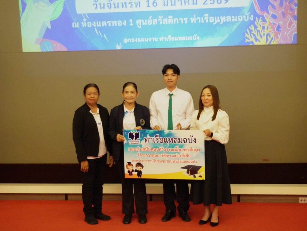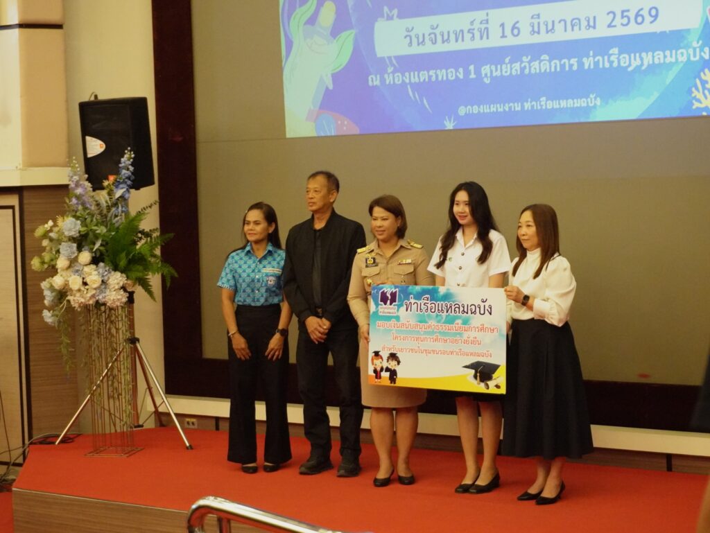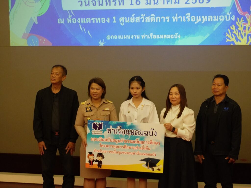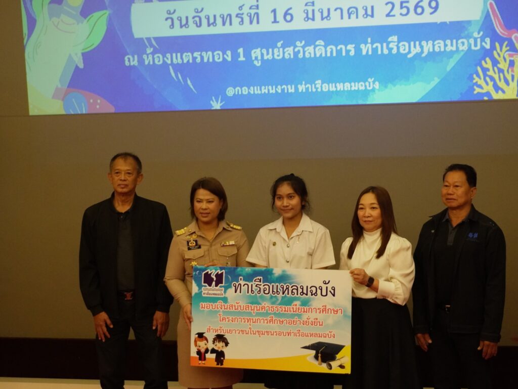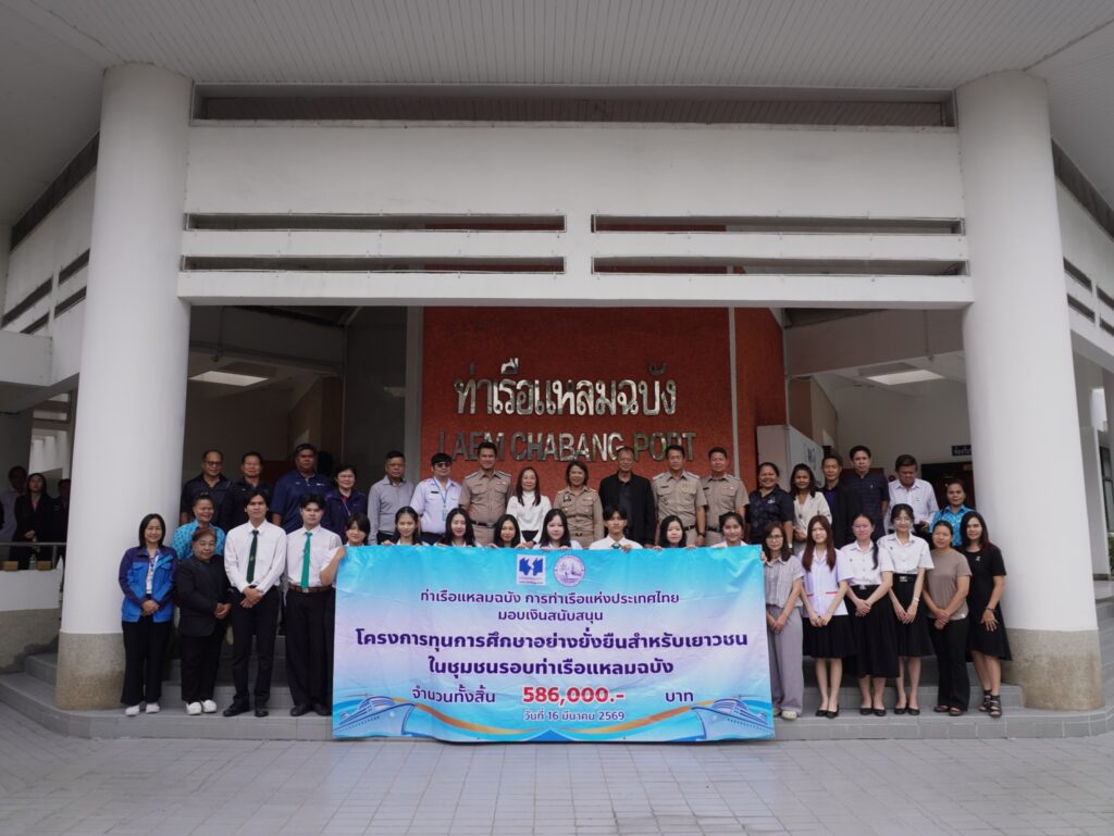 เมื่อวันที่ 16 มีนาคม 2569 ณ ศูนย์สวัสดิการท่าเรือแหลมฉบัง อำเภอศรีราชา จังหวัดชลบุรี นางสิริมา กีรตยาคม รองผู้อำนวยการท่าเรือแหลมฉบัง เป็นประธานเปิดโครงการ “ทุนการศึกษาอย่างยั่งยืนสำหรับเยาวชนในชุมชนรอบท่าเรือแหลมฉบัง” ประจำปีการศึกษา 2569 ครั้งที่ 1 โดยมีหน่วยงานที่เกี่ยวข้อง ผู้นำชุมชน และเยาวชนผู้ได้รับทุนเข้าร่วม