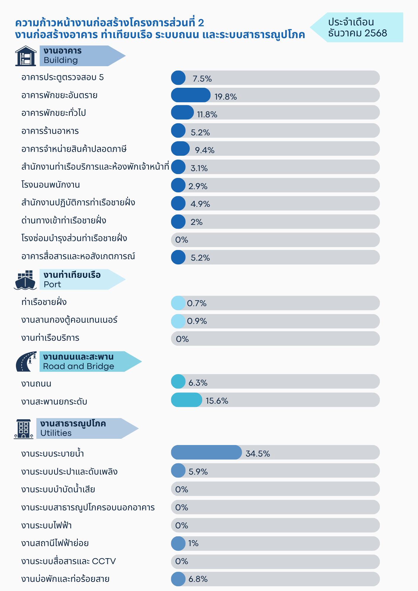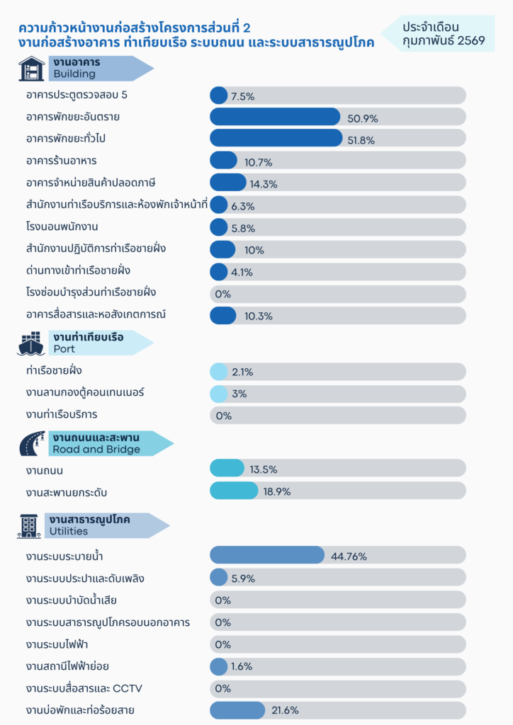 ส่วนที่ 2 งานก่อสร้างอาคาร ท่าเทียบเรือ ระบบถนน และระบบสาธารณูปโภค